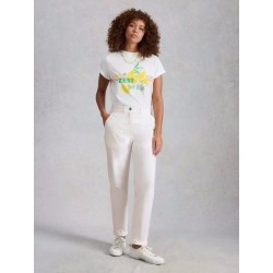Pantalon longueur 7/8 ième de forme chino avec double poches plaquées.